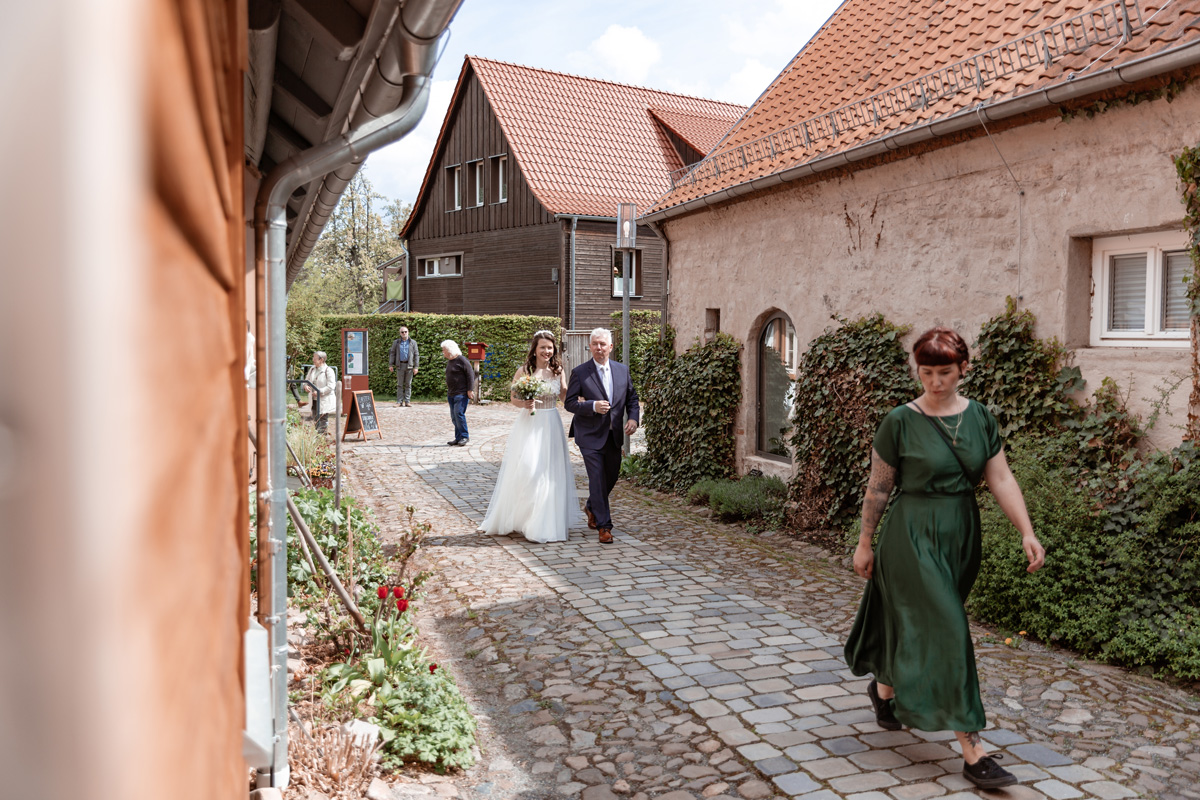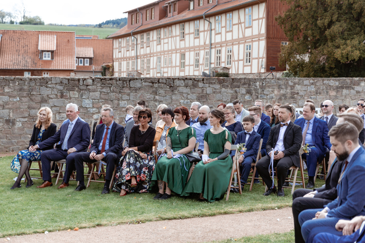 Die wunderschöne Hochzeitsfeier fand im Garten des idyllischen Klosters Drübecks im malerischen Harz statt. Die traumhafte historische Kulisse des Klosters verlieh der Hochzeit einen ganz besonderen Charme. Die Vorbereitungen für diesen großen Tag waren äußerst detailverliebt und liebevoll gestaltet, was sofort ins Auge sprang.