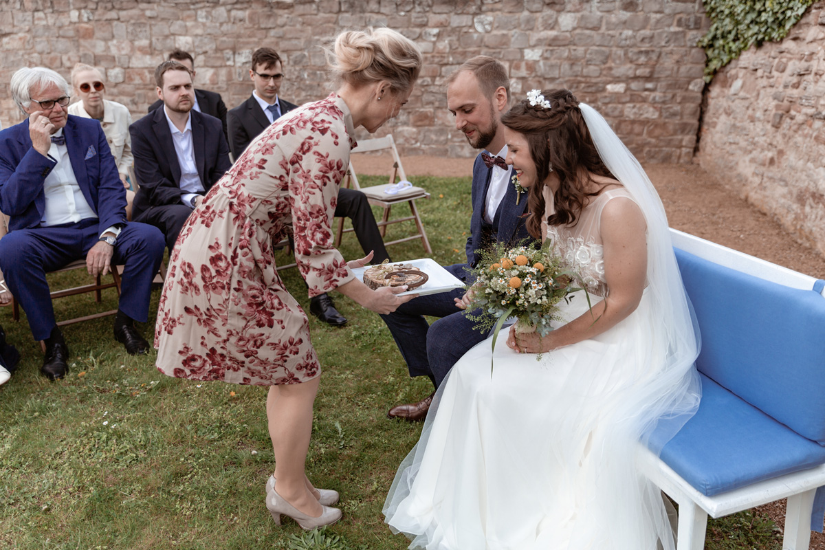 Die Hochzeitszeremonie war eine freie Trauung, die von der liebevollen Rednerin Franzi durchgeführt wurde. Ihre einfühlsamen Worte berührten die Herzen aller Gäste. Es war mir eine große Freude, sie während dieser emotionalen Zeremonie kennenzulernen und die einzigartigen Momente festhalten zu dürfen.